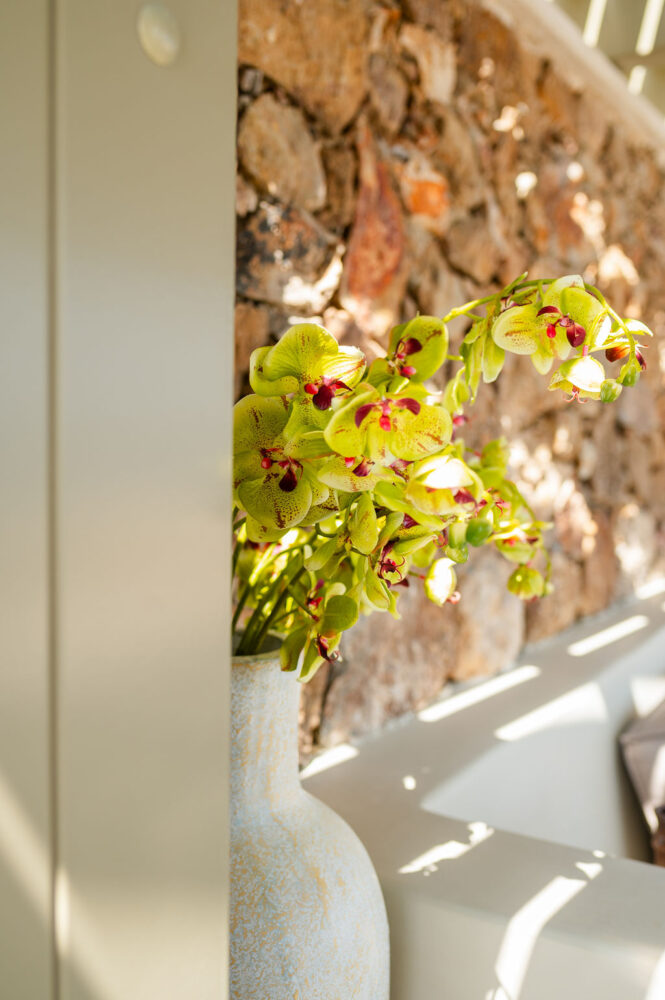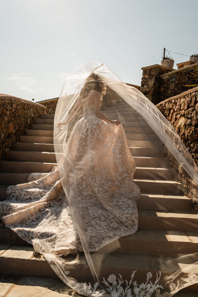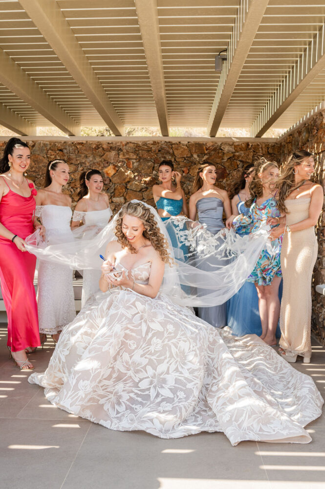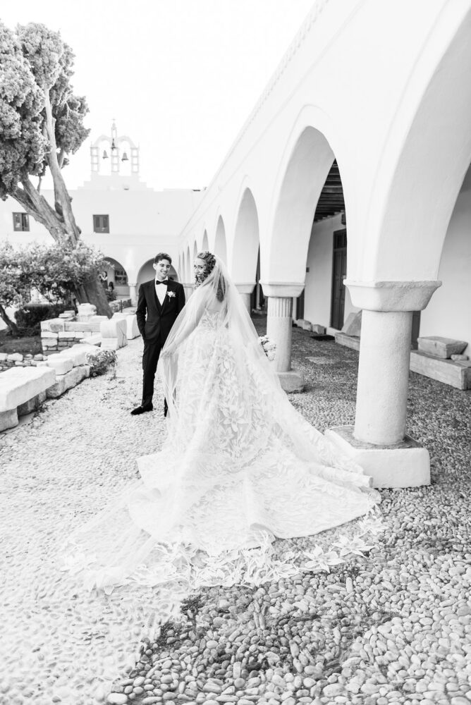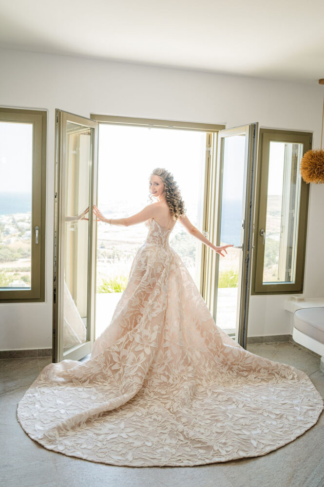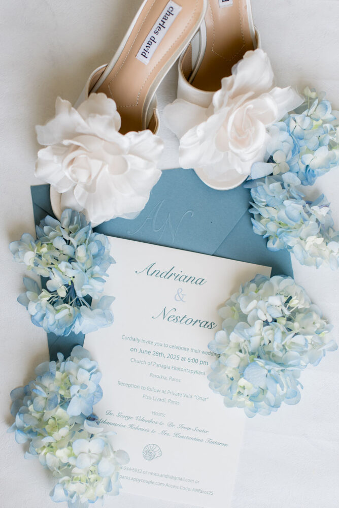 “With you I shall leave, on ships through seas, that I do know, with you I shall live them again” reflecting the journey taken together by Adrianna and Nestoras who chose their private estate in the island of Paros for their mesmerizing wedding.