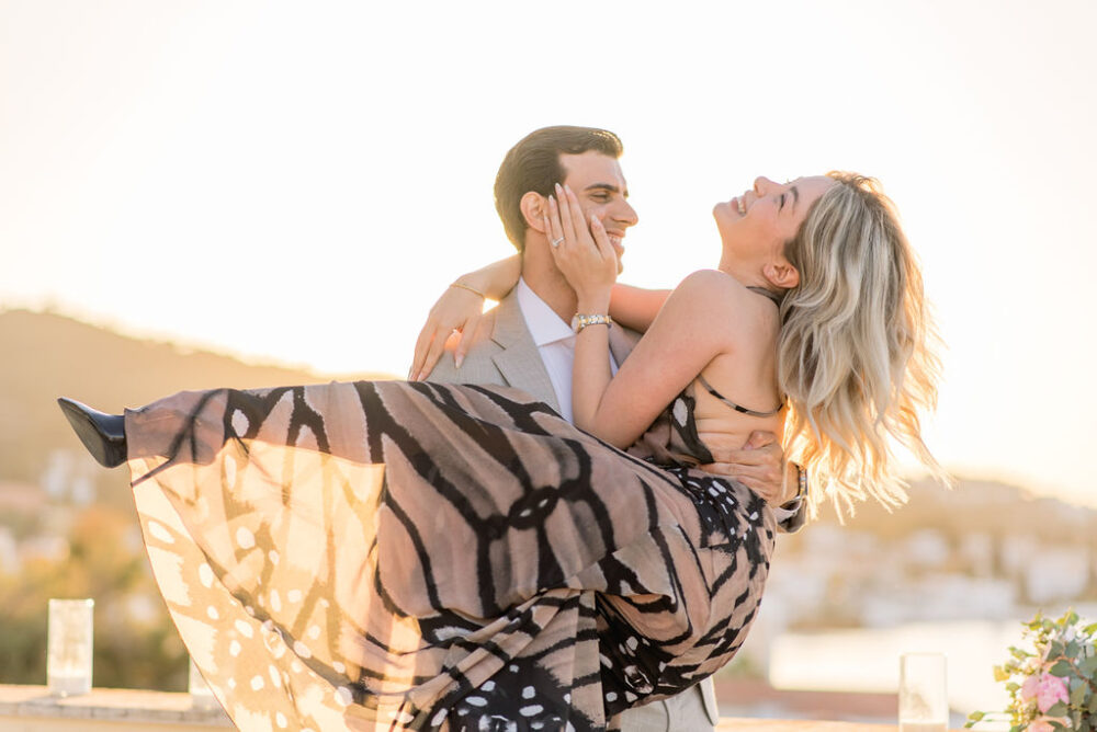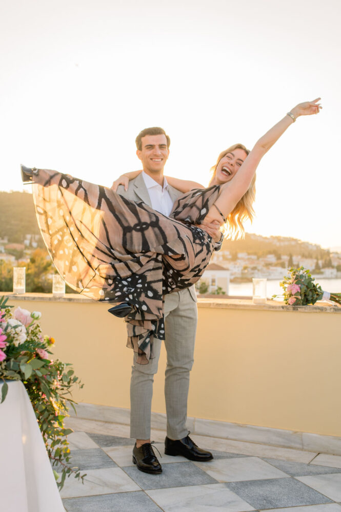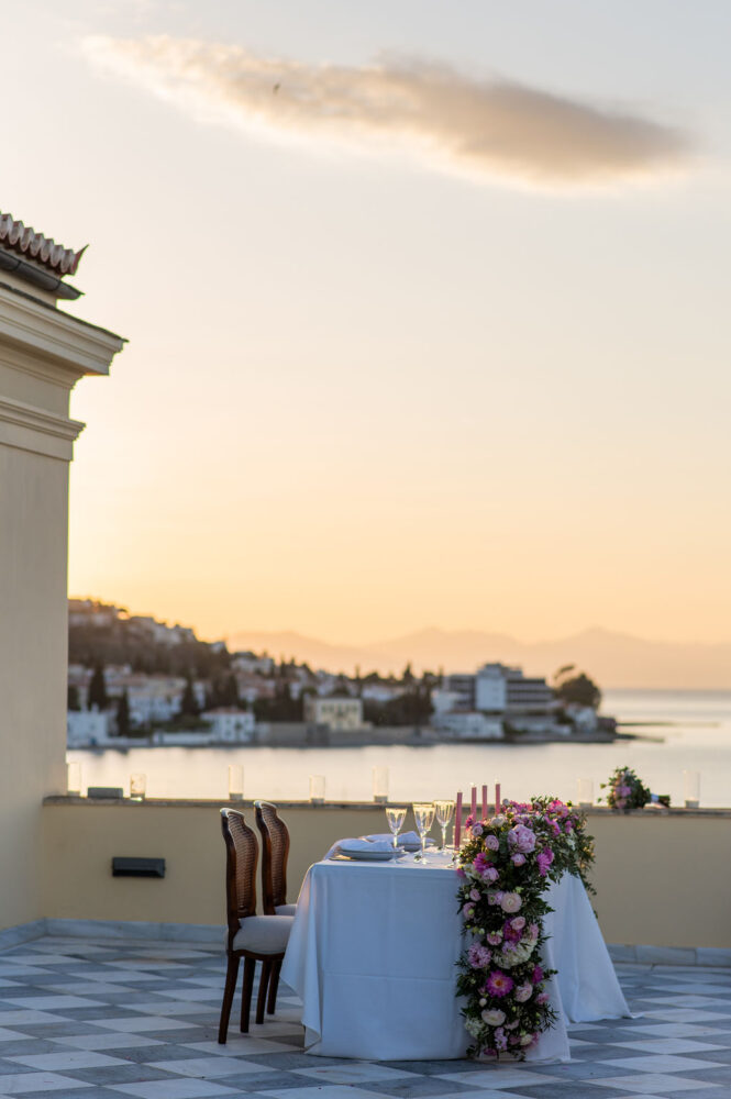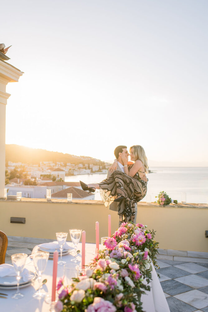 Right in front of the sea, at the historic and impossibly romantic “Poseidonion Hotel” in Spetses, he popped the question and Chrysi said “yes”!