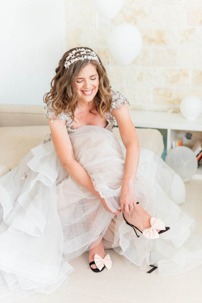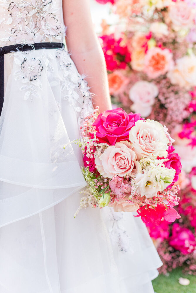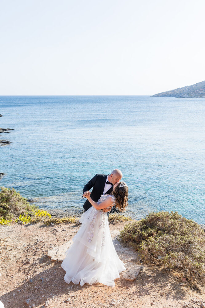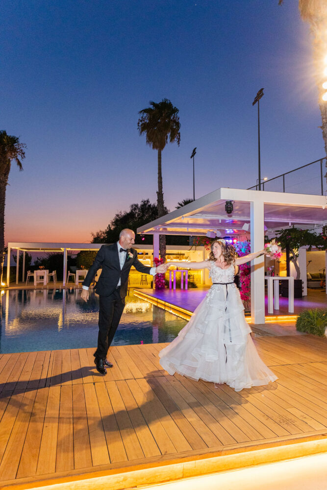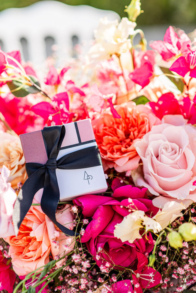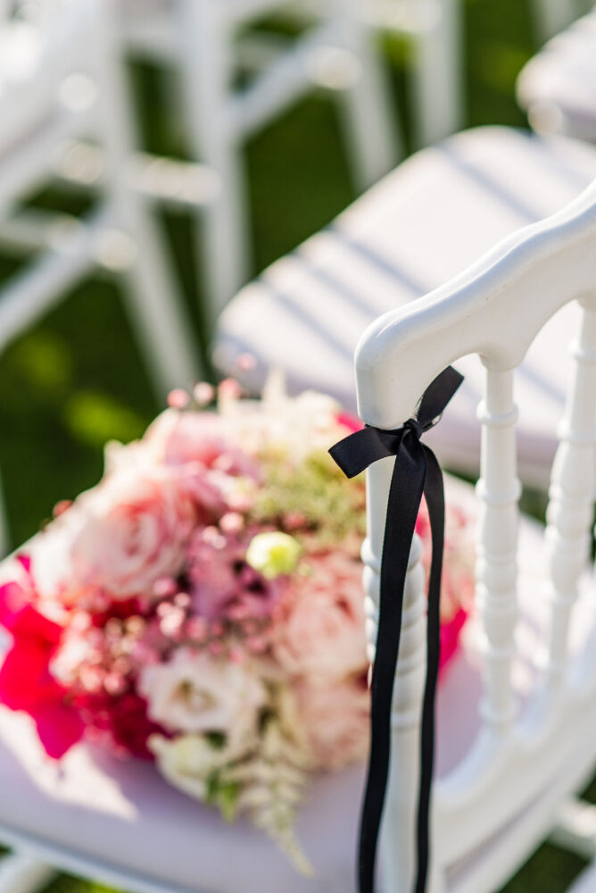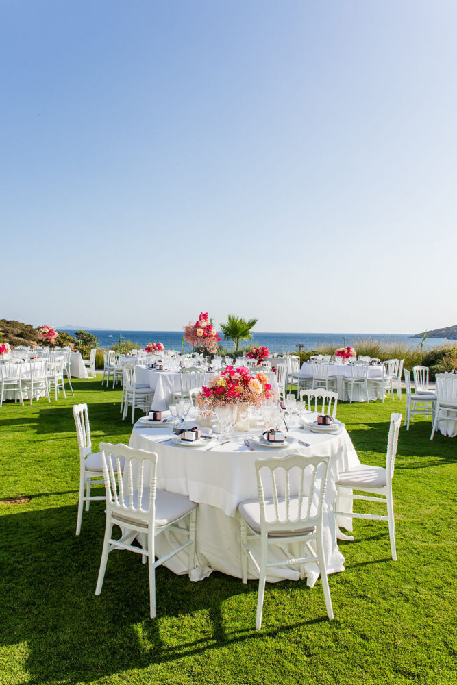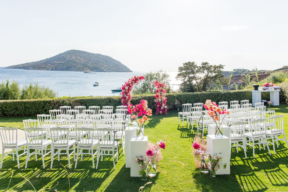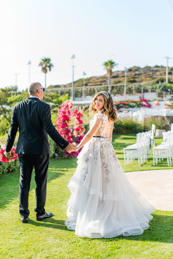 Wedding planner Make my dream Events gave the spectacular seaside scenery an extra “oomph” with opulent flower arrangements, custom monograms, and elegant details.