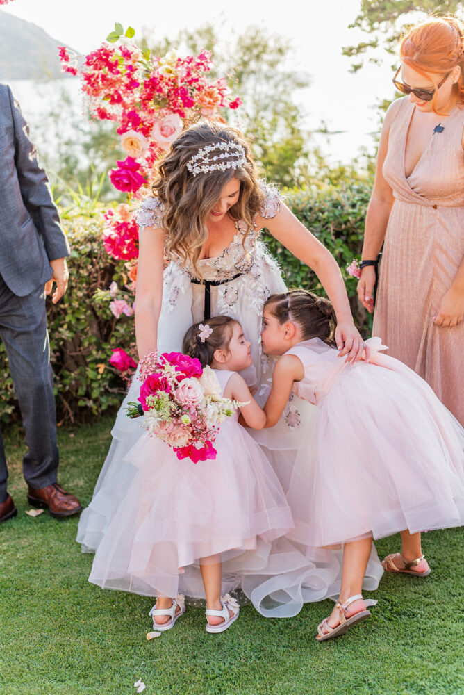 They live in Paris but celebrated their wedding at Ktima 48 in the Athenian Riviera, surrounded by lots of friends and family and the cutest “paranifakia” aka flower girls!
