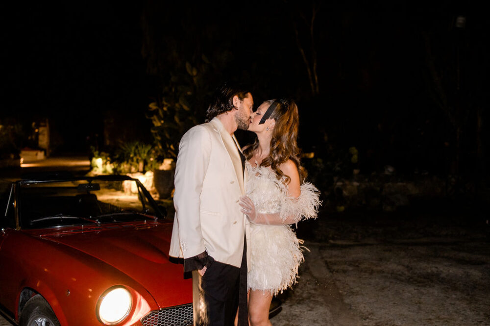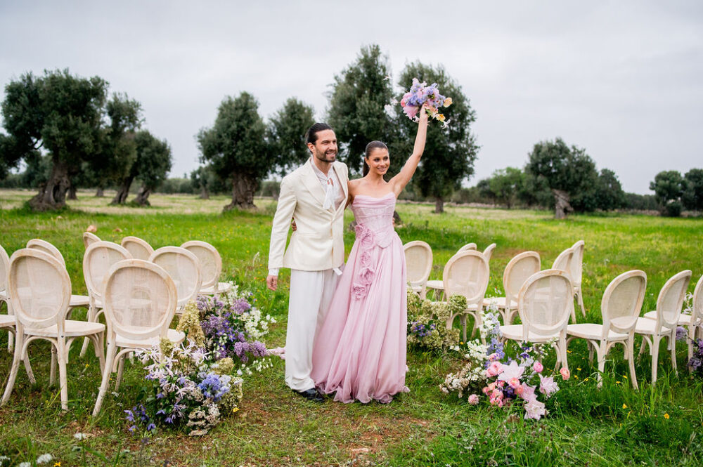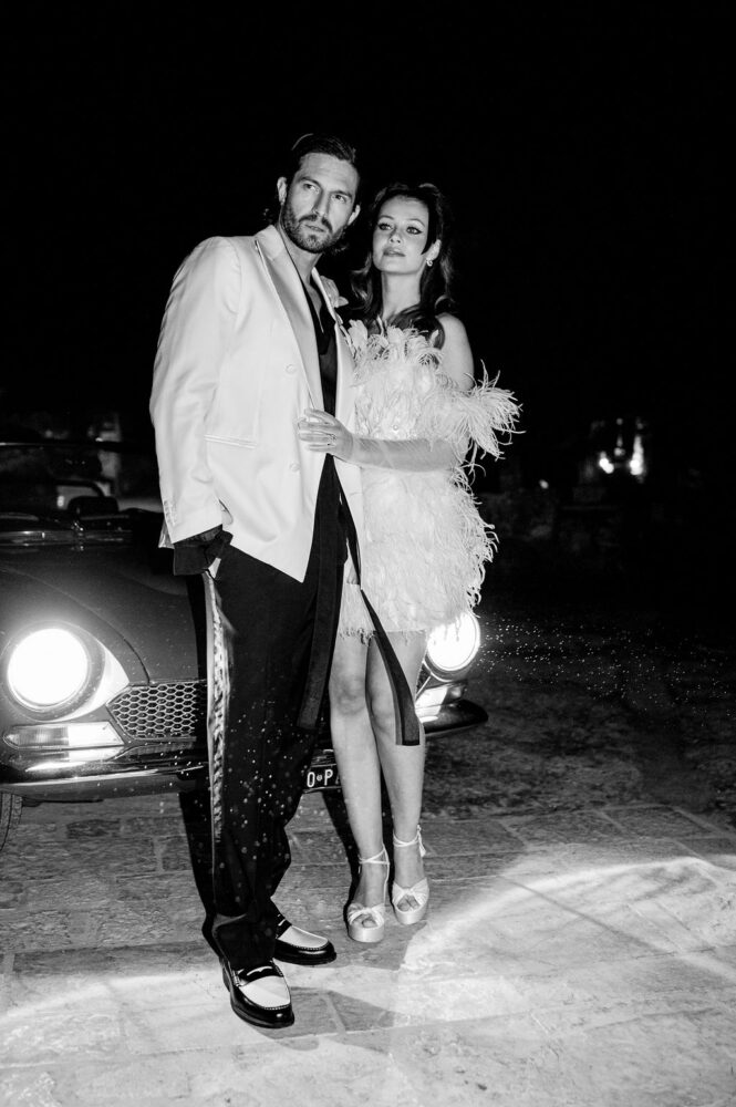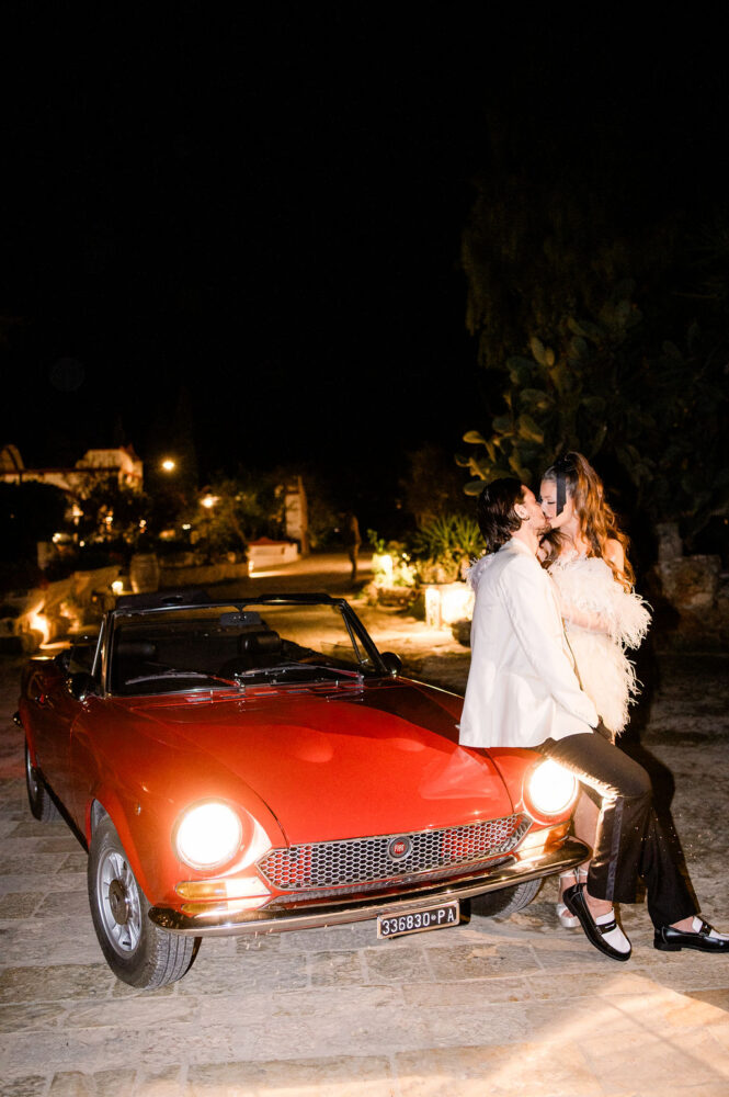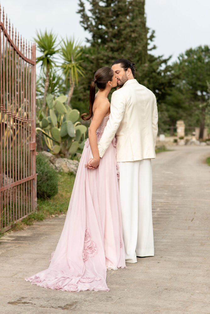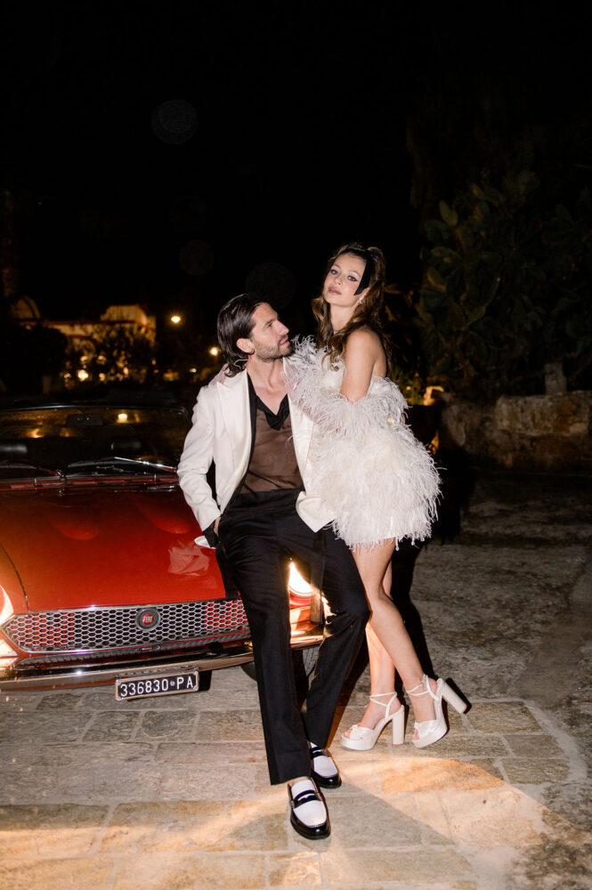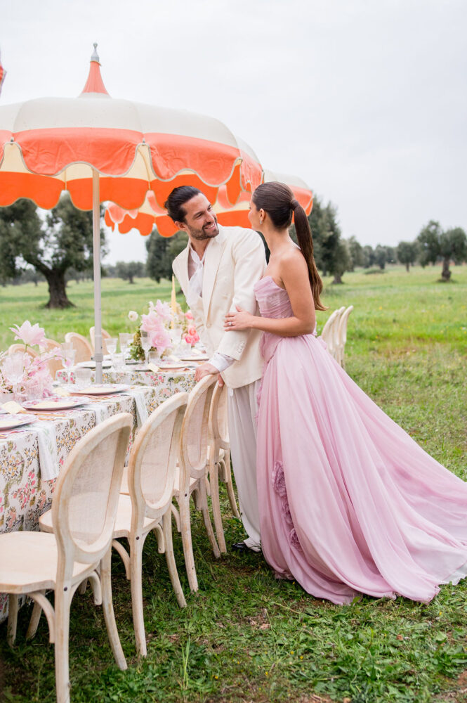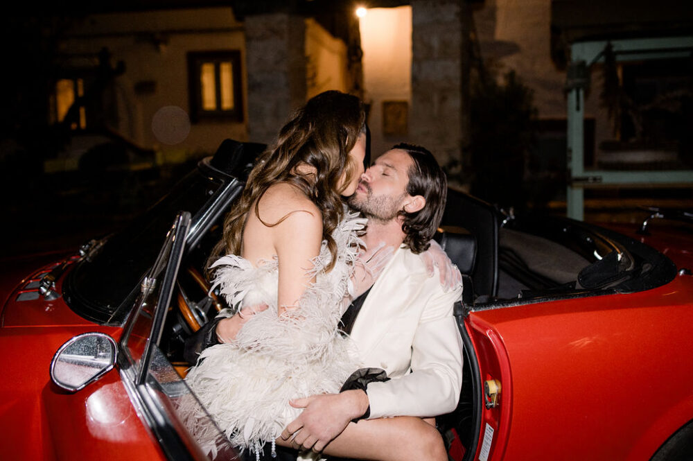 Italy never plays background—it steals the scene. In bright Apulia, Katherine and Dylan brought playful color, retro whimsy, and a wink to Wes Anderson. Add a twirling pink dress, a vintage Fiat sprinting in from Rome, and plenty of cool‑couple sparkle.