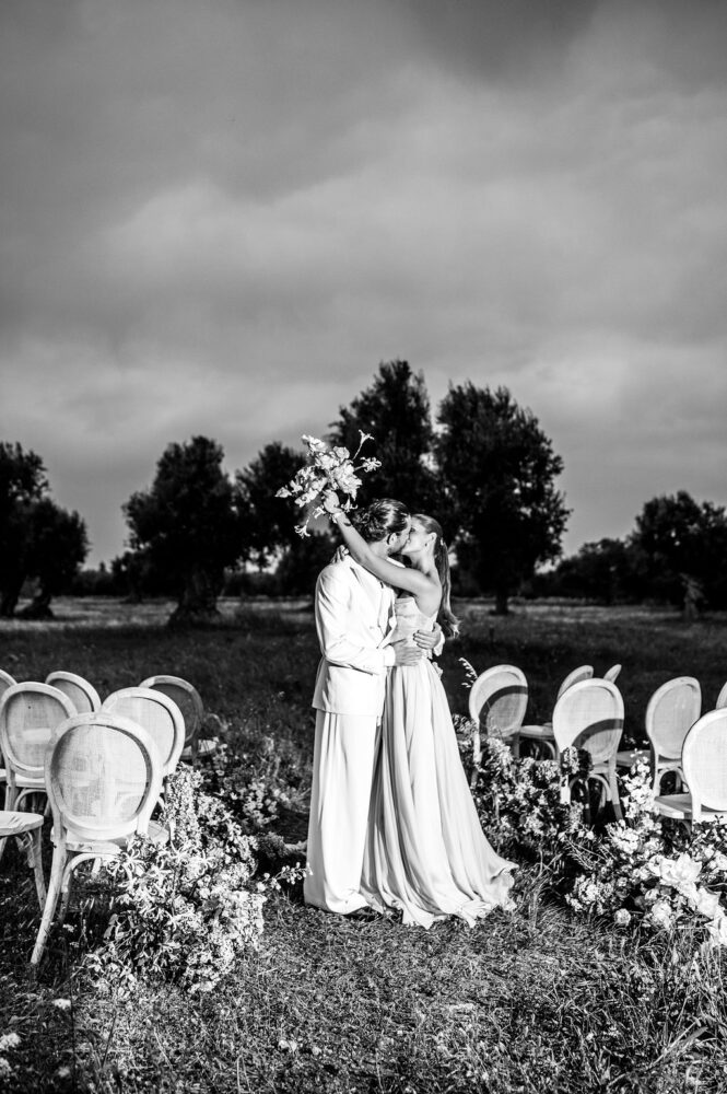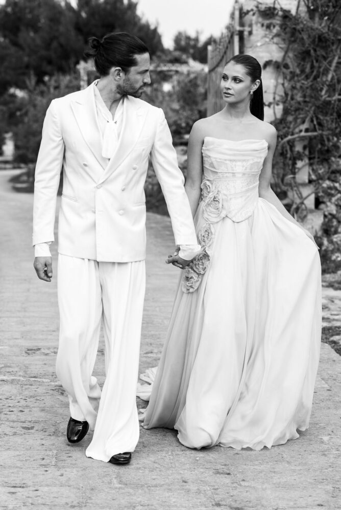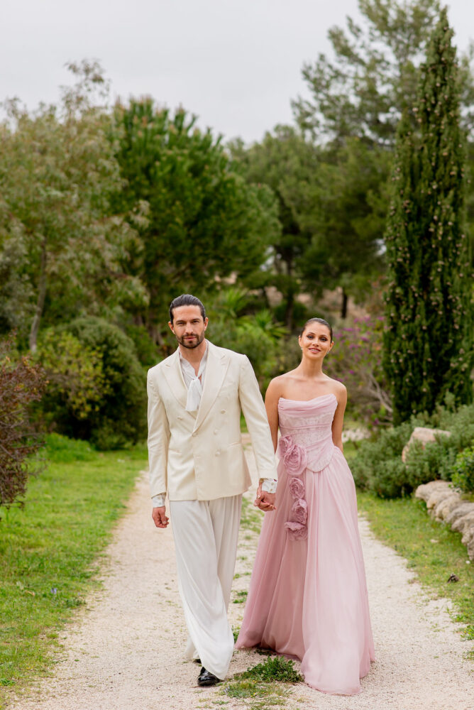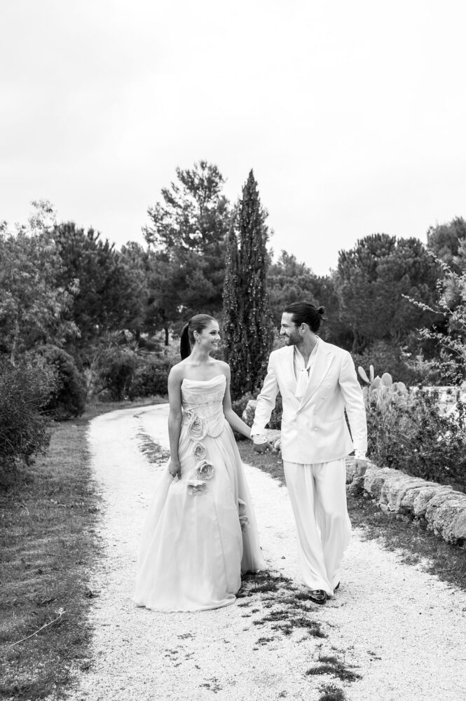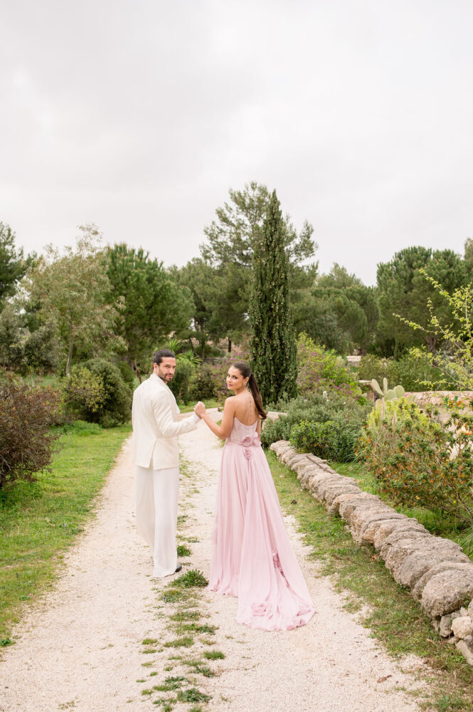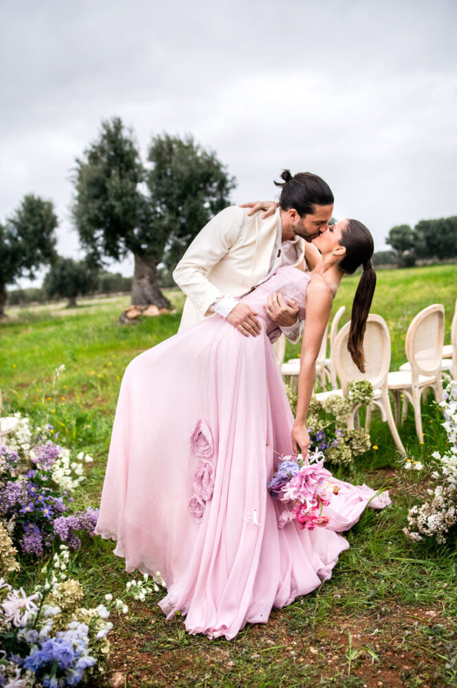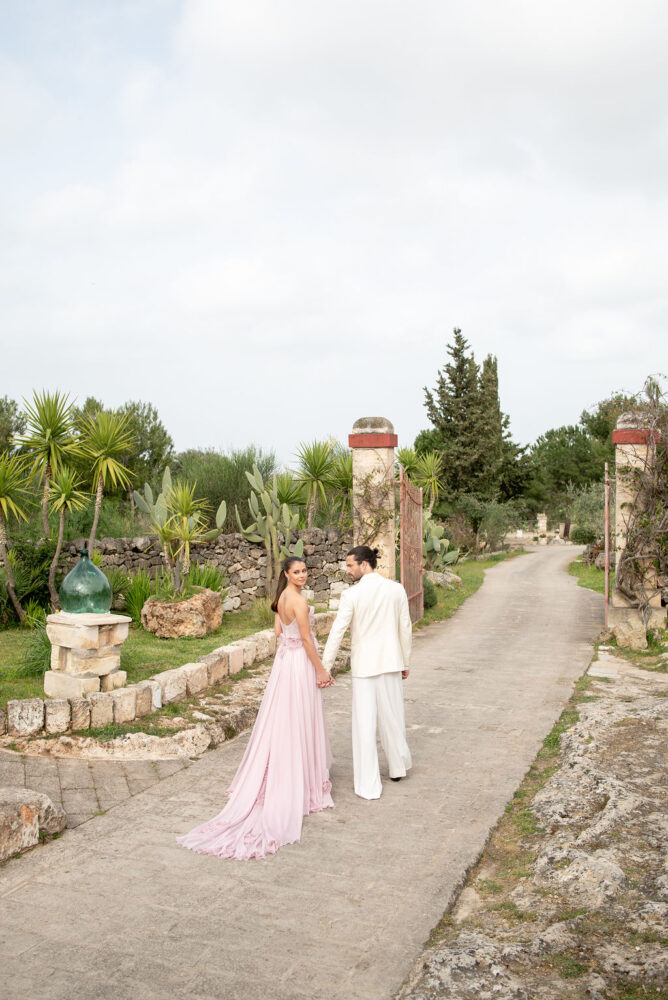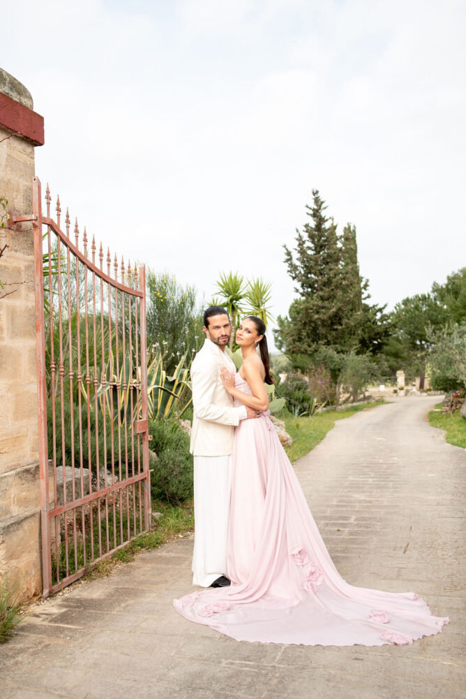 Italy never plays background—it steals the scene. In bright Apulia, Katherine and Dylan brought playful color, retro whimsy, and a wink to Wes Anderson. Add a twirling pink dress, a vintage Fiat sprinting in from Rome, and plenty of cool‑couple sparkle.